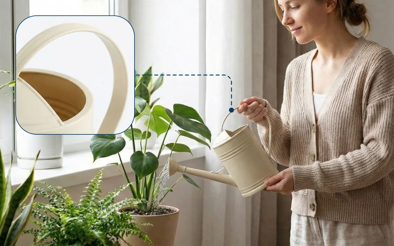Håll inomhusgrönskan levande utan dropp över hyllorna. Nygex vattenkanna ger ett jämnt flöde för prydlig bevattning. Den långa pipen når rötterna enkelt i trånga hörn. En generös storlek på 2 L innebär färre påfyllningar varje gång.