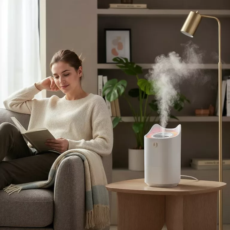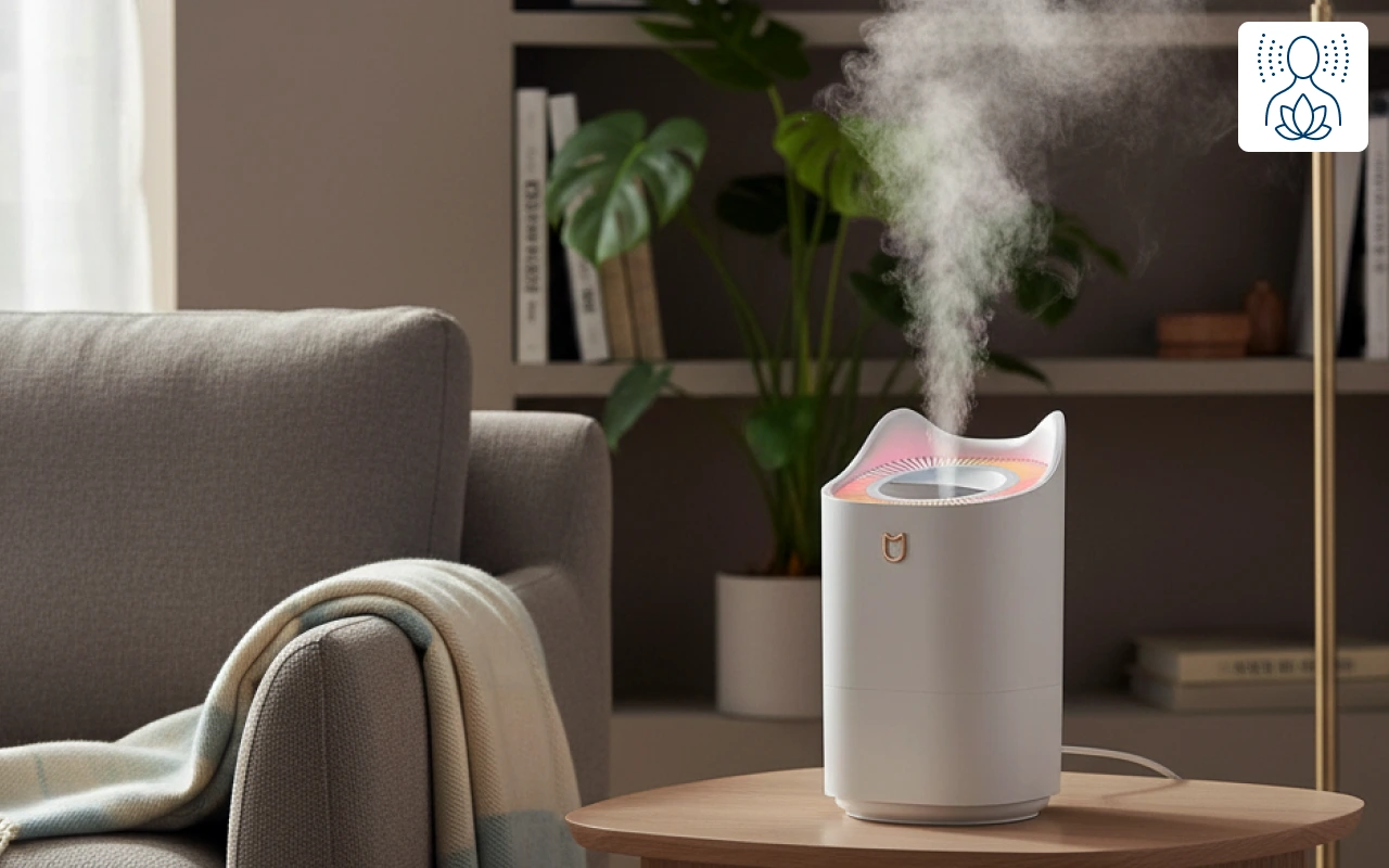 Vår luftfuktare fyller ditt rum med dofter från eteriska oljor, vilket förbättrar ditt humör och minskar stress. Välj din favoritdoft för att skapa en mer lugnande atmosfär.