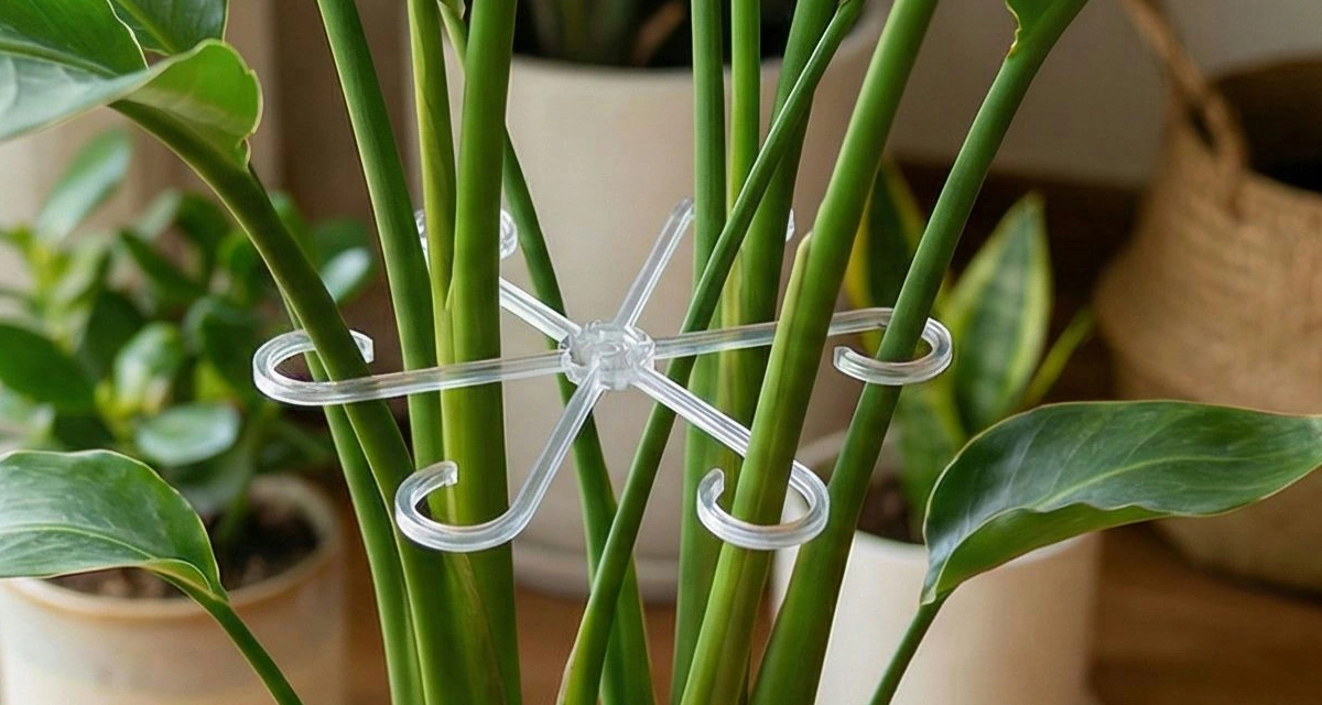 Detta stöd fästs snabbt runt grenarna utan verktyg. Krukor ser plötsligt prydliga ut igen, vilket gör fönsterbrädor härligt uppfräschade.