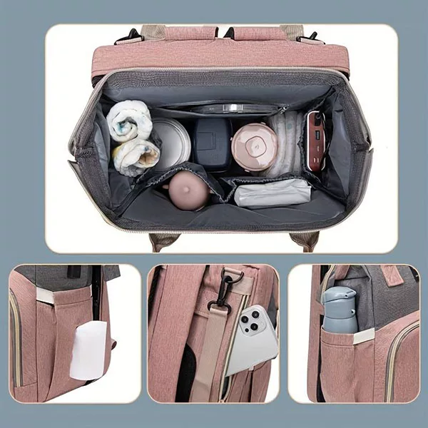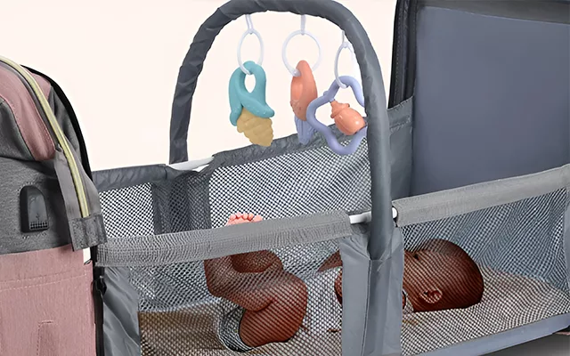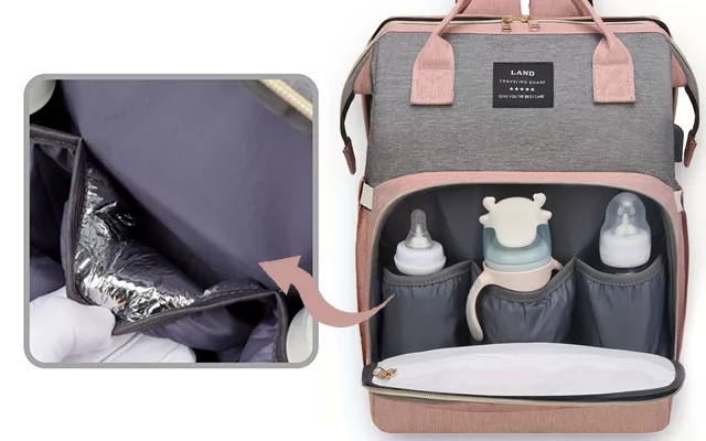 Denna ryggsäck gör utflykter med din baby enklare. Den erbjuder en ren, säker plats för att ta hand om ditt barns behov.