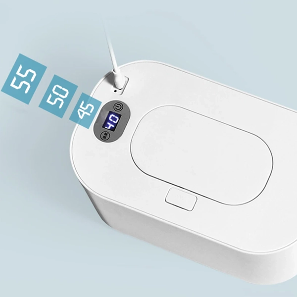 Vår värmare har en enkel design utan komplicerade inställningar. Placera bara våtservettasken inuti så är du redo.