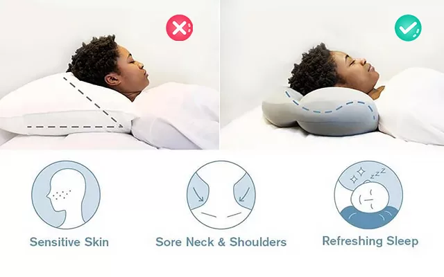Vår molnformade kudde ger optimalt stöd för ditt huvud, nacke och axlar. Denna justering håller din övre ryggrad i en neutral position. Den hjälper till att lindra muskelstelhet i kragområdet.