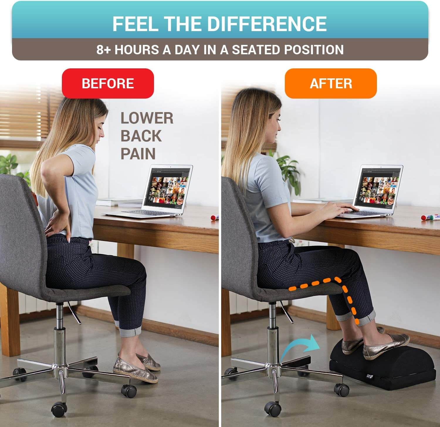 Om du sitter mer än åtta timmar om dagen är denna fotstödskudde perfekt för dig! Den minskar trycket på dina ben, nedre rygg och midja, ankel svullnad, rätar upp kroppen för att främja blodcirkulationen. Kudden stoppar smärta och utseendet av åderbråck. Den förhindrar också blodproppar som kan leda till djup ventrombos.