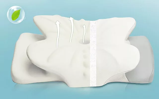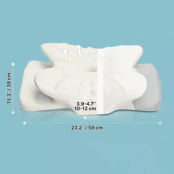 Vår minnesskumkudde är omsorgsfullt designad med en central urgröpning för att vagga ditt huvud. Den erbjuder två höjdkonturer för att passa olika nackstorlekar. Dessa egenskaper främjar korrekt position för din cervikala ryggrad, tar bort muskelspänningar och lindrar obehag.
