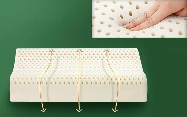 Nygex-kudden är tillverkad av naturlig thailändsk latex. Den har små luftspår som främjar fri luftcirkulation. Denna design hjälper till att undvika värmeuppbyggnad och förhindrar nattsvettningar.