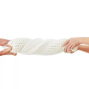 Den naturliga latexen är elastisk men ändå motståndskraftig. Den gör att vår kudde kan formas perfekt efter din nacke och ändå behålla sin form, även efter långvarig användning.