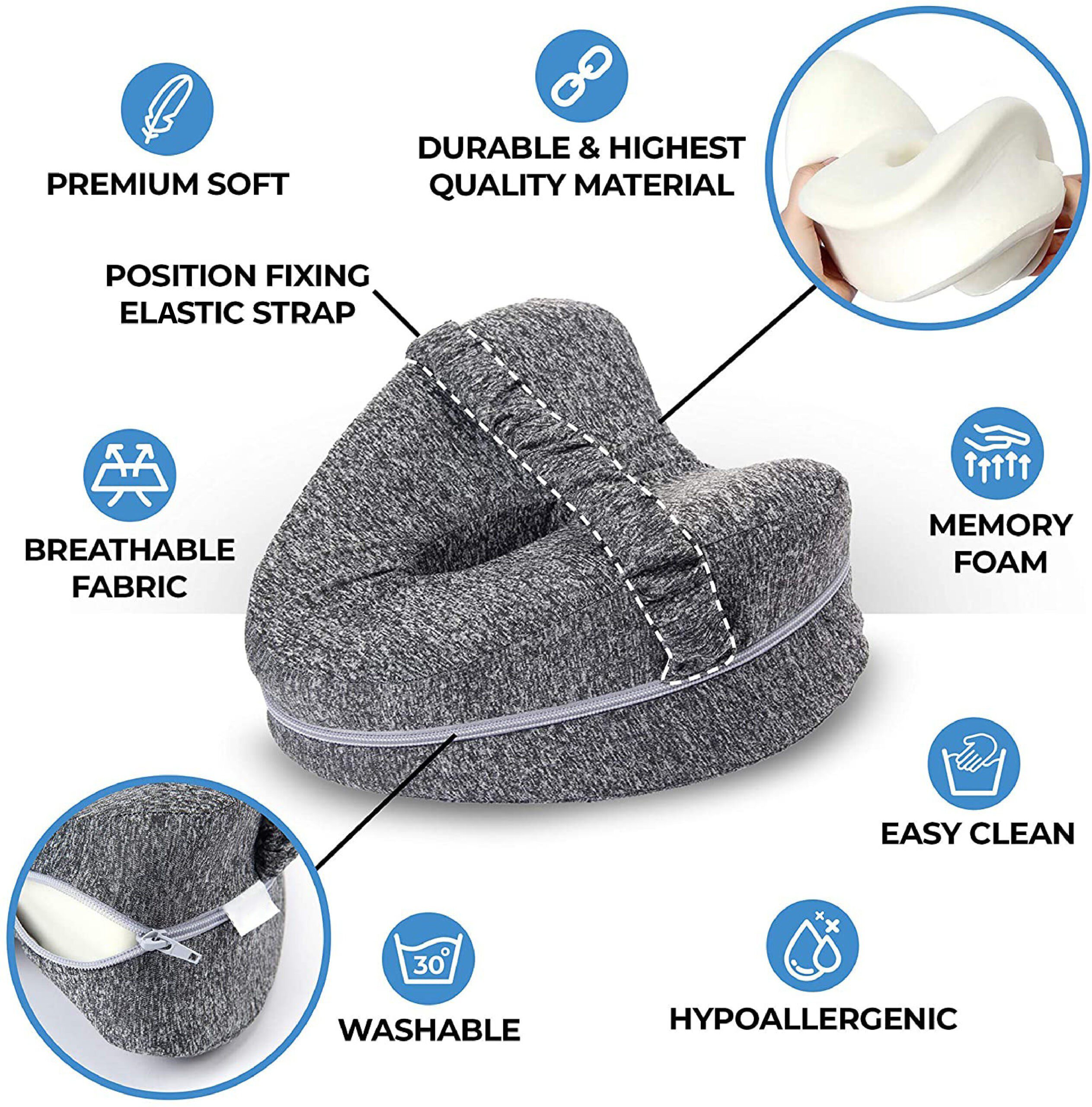 Att ha smärta i nedre delen av ryggen eller knäna kan få dig att vända och vrida dig hela natten och påverka den totala sömnkvaliteten negativt. Dålig justering, led- och ryggsmärta är bara några orsaker till ohälsosam sömn. Med den ortopediska benkudden kan du förbättra och eliminera flera hälsoproblem och äntligen känna dig utvilad. Konturkudden är ergonomiskt utformad för att passa bekvämt mellan benen och ge idealisk ryggradsjustering och stöd som hjälper till att minska ischias, smärta i nedre delen av ryggen, höfter eller leder. Den bildar en tjock dyna som separerar benen. Genom att återställa ryggradens naturliga justering hjälper kudden till att lindra tryckpunkter som ofta orsakar obehag och smärta. Upplev hur denna knäkudde varsamt omsluter dina ben och ger det sömnstöd som behövs för din nedre rygg, knän, höfter, leder och ischias.